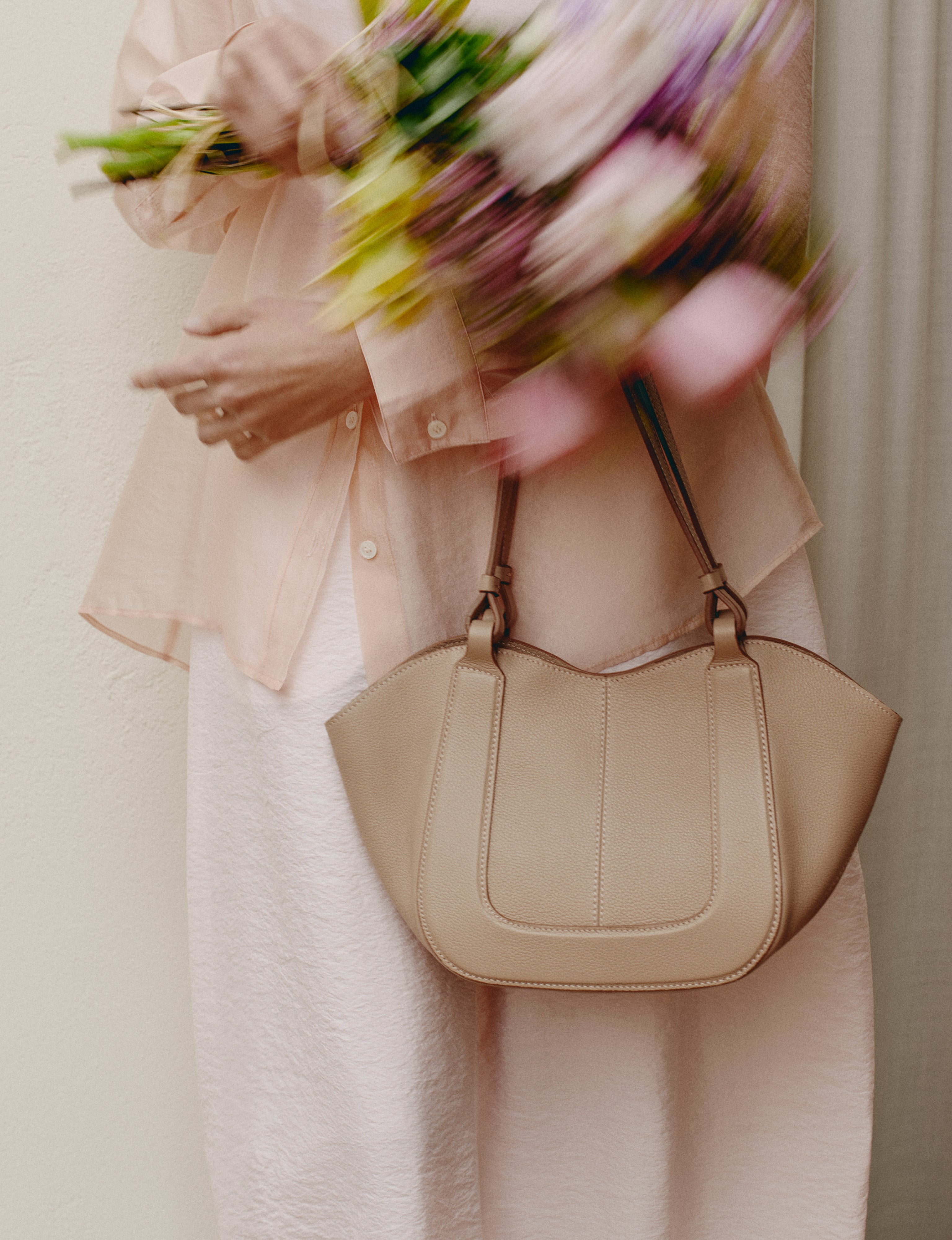 Sac cabas grand volume en cuir italien, issu de tanneries certifiées LWG. Grâce à son design astucieux, il peut être porté de deux façons : ouvert, en forme de cabas, ou avec les côtés rentrés pour une allure plus structurée et rectangulaire. Fermeture par liens en cuir accrochés par un anneau. Anses solides en cuir. 3 poches en cuir à l'intérieur. Doublure en suédine. Fabriqué à la main en Italie